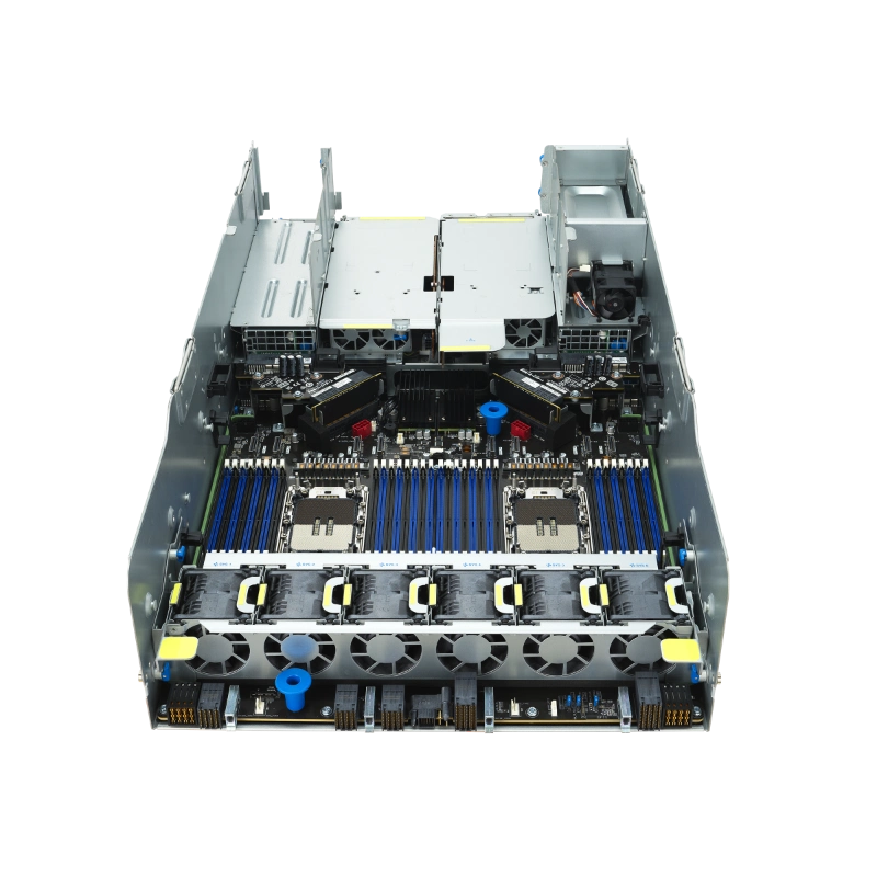 ESC NB8-E11 nổi bật với cấu hình NVIDIA Blackwell HGX B200 tám GPU, được hỗ trợ bởi bộ xử lý Intel Xeon Scalable thế hệ 5 với TDP lên đến 350W. Điều này cho phép máy chủ xử lý các tác vụ tính toán chuyên sâu, từ huấn luyện mô hình AI lớn đến suy luận thời gian thực.