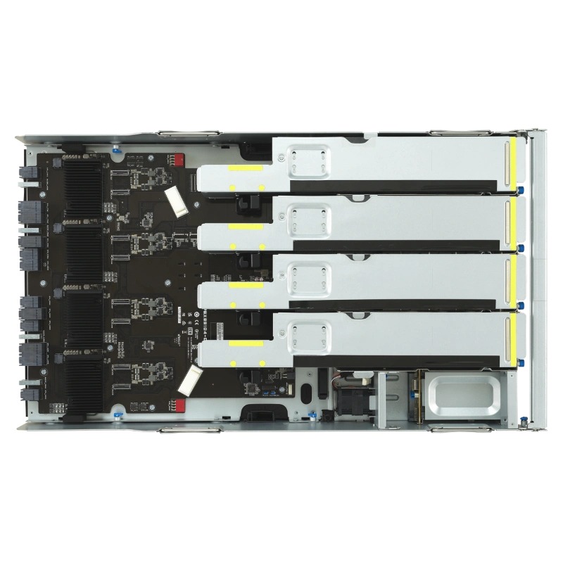 Tích hợp lưu trữ, ESC NB8-E11 tương thích với các cụm lưu trữ all-flash AI của ASUS, hỗ trợ SAN, SDS, hệ thống tệp song song (GDS, POSIX, S3, HDFS, NFS, SMB), với tính năng auto-tiering, snapshot và replication từ xa. Điều này đảm bảo xử lý dữ liệu lớn một cách mượt mà cho AI.