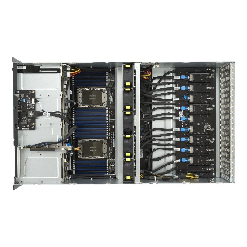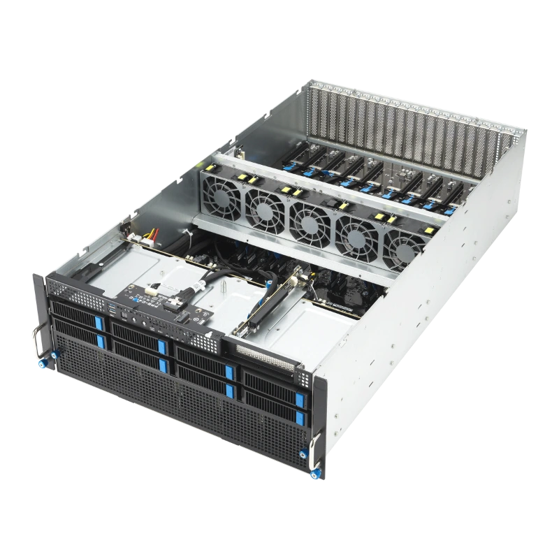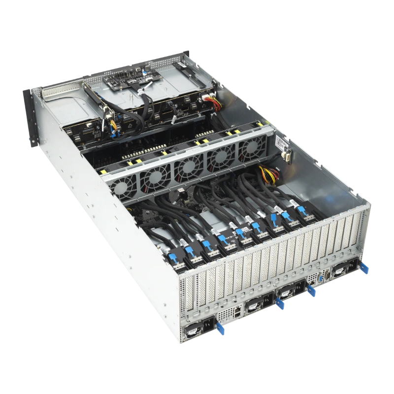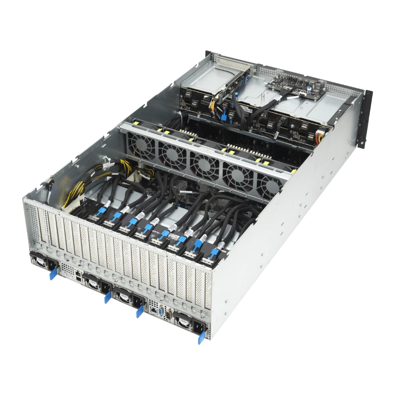 ASUS ESC8000-E11 là máy chủ GPU 4U dual-socket, sử dụng CPU Intel Xeon Scalable thế hệ 5, hỗ trợ đến 8 GPU khe đôi với NVLink và NVIDIA Bluefield DPU. Chứng nhận NVIDIA-Certified Systems™ cho OVX™ L40S Server. Thiết kế tiết kiệm năng lượng, làm mát bằng không khí, nguồn điện Titanium 3000W dự phòng. Lưu trữ linh hoạt với 8 khay Tri-Mode NVMe/SATA/SAS, 11 khe PCIe 5.0, 32 khe DIMM. Quản lý qua ASMB11-iKVM và ASUS Control Center, bảo mật Root-of-Trust. Lý tưởng cho AI, HPC, render, mô phỏng khoa học. Form factor 4U tiết kiệm không gian, chứng nhận FCC. Sản phẩm thúc đẩy đổi mới, giảm chi phí vận hành cho doanh nghiệp.