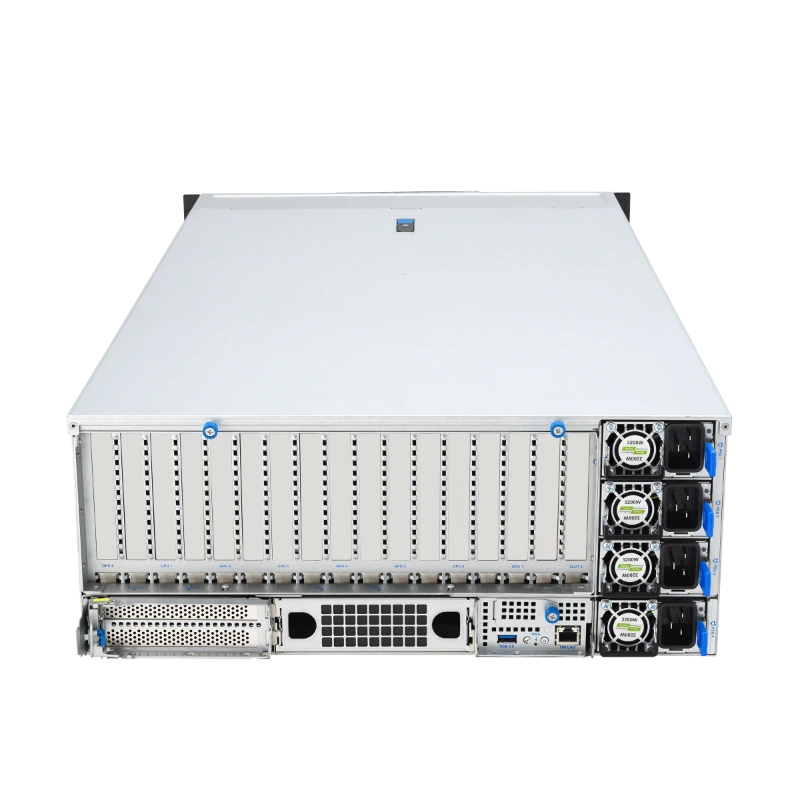 Sản phẩm này được thiết kế để chứa tám card đồ họa dual-slot, cụ thể là NVIDIA® H200 hoặc NVIDIA RTX PRO™ 6000 Blackwell Server Edition, mỗi card có thể hỗ trợ công suất lên đến 600 watt. Điều này biến ESC8000A-E13 thành một nền tảng lý tưởng cho các workload tăng tốc GPU, nơi mà sức mạnh đồ họa song song là chìa khóa để xử lý các thuật toán phức tạp. NVIDIA H200 là một trong những GPU hàng đầu cho AI, với khả năng xử lý tensor core và FP8 precision, giúp tăng tốc độ huấn luyện mô hình học sâu lên gấp nhiều lần so với CPU thông thường. Trong khi đó, NVIDIA RTX PRO™ 6000 Blackwell mang lại hiệu suất đồ họa chuyên nghiệp, phù hợp cho các ứng dụng như rendering 3D, mô phỏng khoa học hoặc thậm chí là phát triển nội dung số. Việc hỗ trợ tám GPU đồng thời cho phép ESC8000A-E13 xử lý các nhiệm vụ phân tán, như huấn luyện mô hình AI quy mô lớn hoặc chạy các mô phỏng vật lý phức tạp, mà không cần nhiều máy chủ riêng lẻ. Điều này không chỉ tiết kiệm chi phí mà còn đơn giản hóa quản lý hệ thống.
