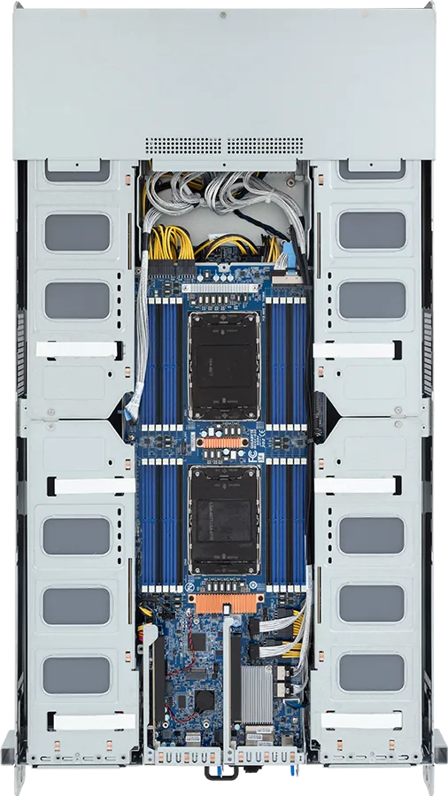 Việc nhồi nhét 8 GPU vào không gian 2U đặt ra thách thức cực lớn về nhiệt độ. GIGABYTE đã giải quyết bằng: