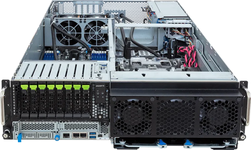 Trong khi các dòng 4U hoặc 5U tập trung vào số lượng GPU tối đa (8 card), GIGABYTE G363-ZR0-LAX4 chọn thiết kế 3U để mang lại sự cân bằng tuyệt vời. Kích thước này đủ gọn để tiết kiệm không gian Rack nhưng vẫn cung cấp không gian tản nhiệt rộng rãi cho hệ thống 4 GPU công suất lớn, giúp doanh nghiệp triển khai các cụm tính toán AI (AI Clusters) với mật độ cao hơn.