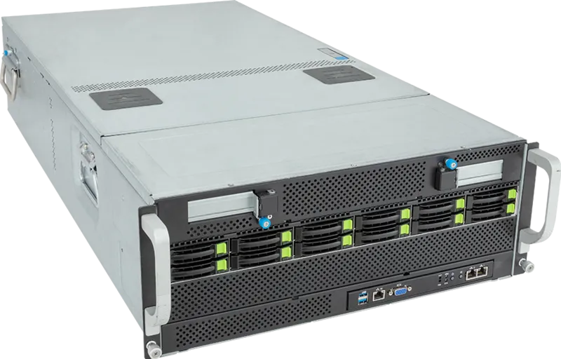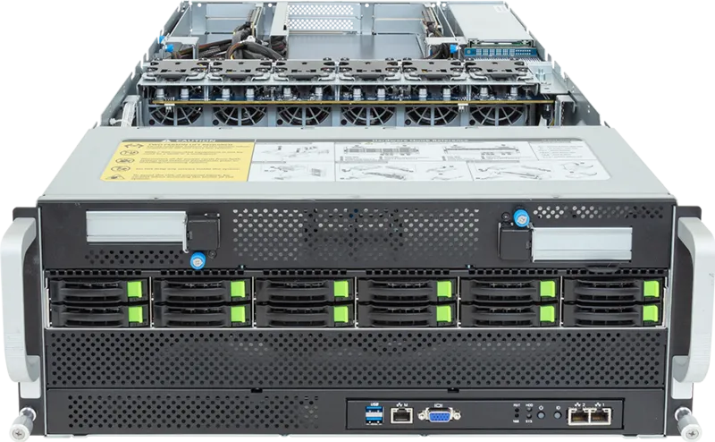 GIGABYTE G493-ZB4-AAP1 (rev. 3.x) là siêu máy chủ GPU 4U tích hợp nền tảng NVIDIA HGX™ H100 8-GPU. Máy vận hành trên bộ vi xử lý AMD EPYC™ 9004 kép (lên đến 128 lõi/CPU), hỗ trợ 24 khe RAM DDR5 và hệ thống lưu trữ 8 khay NVMe Gen5 hot-swap. Với kết nối NVLink® 900GB/s và bộ nguồn dự phòng 3000W Titanium (4+2), đây là hạ tầng tối thượng cho huấn luyện mô hình ngôn ngữ lớn (LLM) và các tác vụ HPC khắt khe nhất.