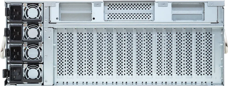 8 khay ổ cứng NVMe Gen5: Các ổ cứng 2.5″ hỗ trợ PCIe Gen5 x4 cho tốc độ đọc/ghi hàng chục GB/s, giúp việc nạp các bộ dữ liệu (dataset) khổng lồ vào GPU diễn ra trong tích tắc.