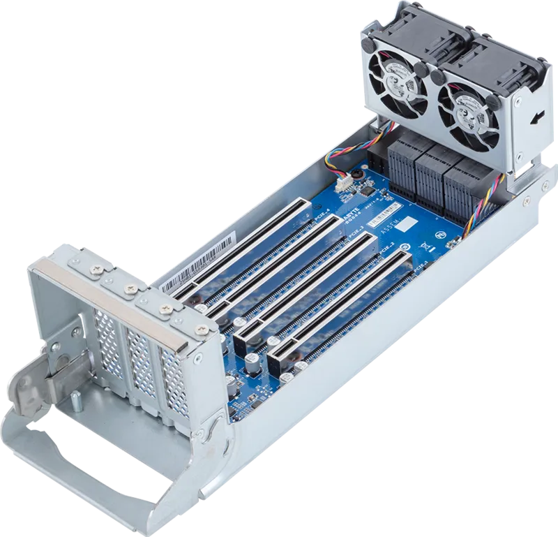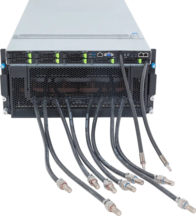 8 khay ổ cứng NVMe Gen5: Các ổ cứng chuẩn 2.5″ hỗ trợ PCIe Gen5 x4 cho phép đọc/ghi dữ liệu ở tốc độ hàng chục GB/s. Điều này cực kỳ quan trọng khi hệ thống cần truy xuất các bộ dữ liệu (dataset) khổng lồ liên tục.