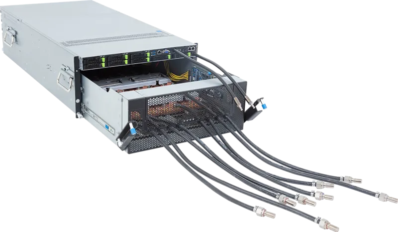 8 khe cắm PCIe Gen5 x16 mở rộng: Ngoài dàn GPU tích hợp, máy vẫn còn trống 8 khe PCIe Gen5 để lắp đặt các card mạng NVIDIA ConnectX-7 400Gb/s. Đây là chìa khóa để kết nối hàng trăm máy chủ G593 lại với nhau tạo thành một cụm siêu máy tính (Supercomputer Cluster).