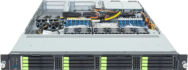 Dù chỉ cao 1U, GIGABYTE đã rất khéo léo trong việc bố trí hệ thống lưu trữ mặt trước: