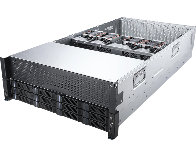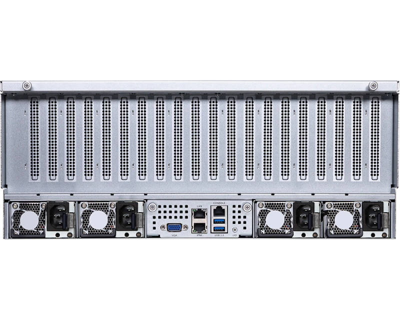 Mật độ GPU vượt trội: Thiết kế không gian rộng rãi bên trong cho phép hệ thống hỗ trợ lên đến 8 card đồ họa GPU đôi (Double-width). Đây là một con số ấn tượng cho khung máy 4U, biến nó thành một “trạm năng lượng” thực thụ cho các tác vụ tính toán song song.