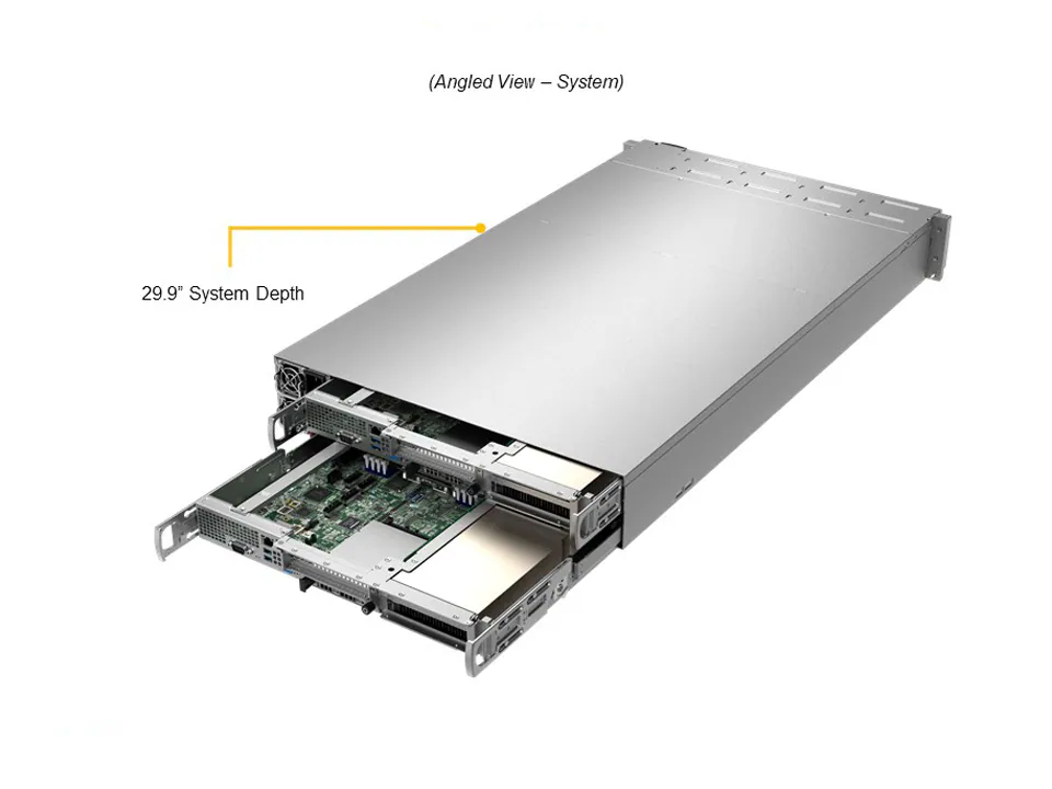 Tiết kiệm không gian: Thay vì sử dụng hai máy chủ 1U hoặc 2U riêng lẻ, bạn có được sức mạnh của hai hệ thống chỉ trong 2U không gian tủ Rack.