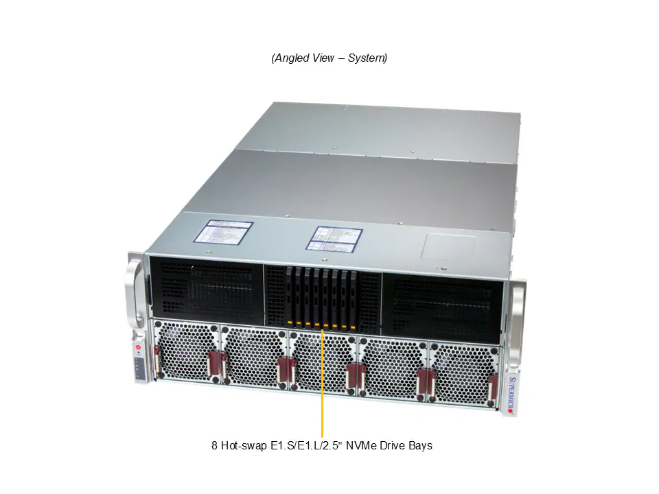 Tối ưu không gian: Hỗ trợ tối đa 4 card đồ họa kích thước lớn (Double-width) như NVIDIA RTX™ 6000 Ada hoặc NVIDIA L40S. Nếu sử dụng các dòng card mỏng (Single-slot) như NVIDIA L4, hệ thống có thể mở rộng lên tới 8 card.