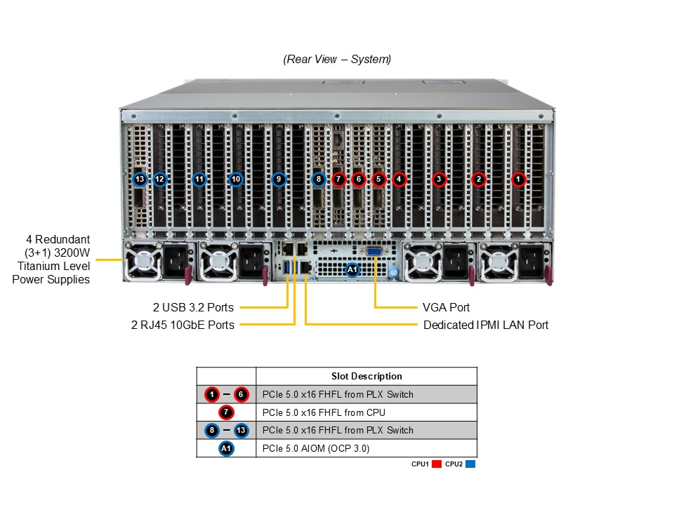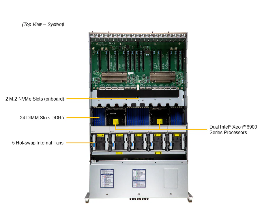 10 khe PCIe Gen5 x16: Ngoài việc cắm GPU, người dùng vẫn còn dư các khe cắm để lắp đặt card mạng tốc độ cao như NVIDIA ConnectX-7 (400Gb/s) hoặc các card tăng tốc lưu trữ.