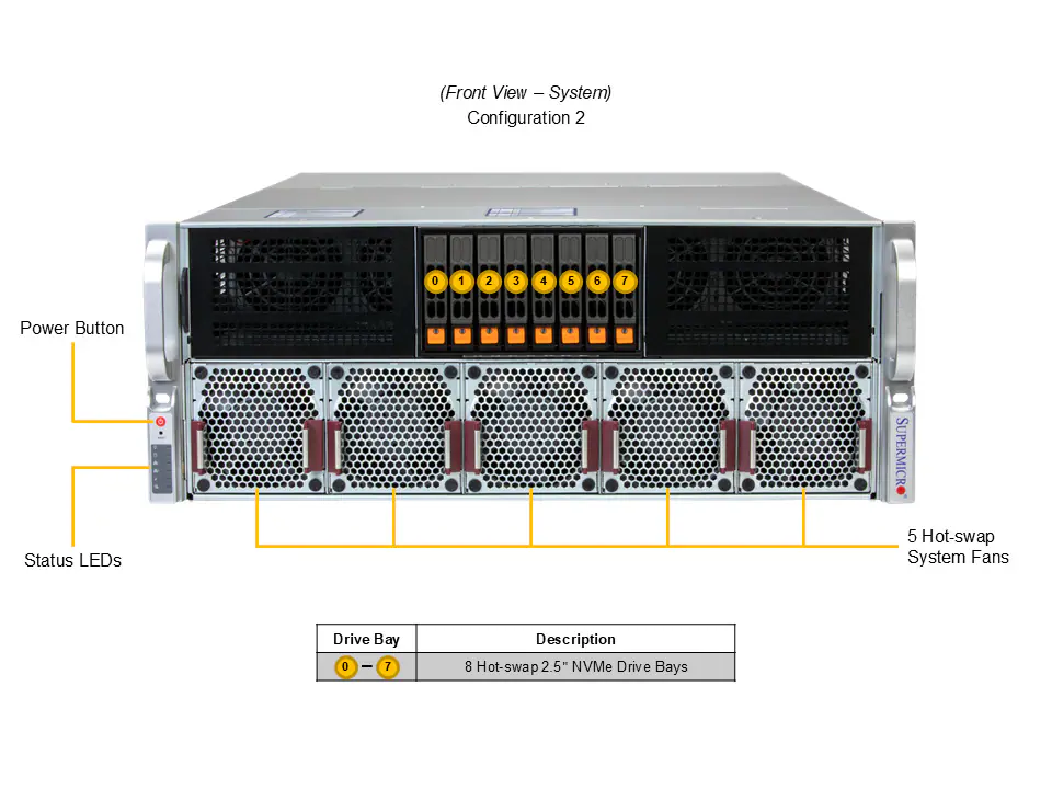 8 khay ổ cứng 2.5″ Hot-swap: Máy hỗ trợ cấu hình lưu trữ linh hoạt giữa NVMe, SATA và SAS. Việc sử dụng ổ NVMe Gen5 cho các khay này giúp tốc độ truy xuất dữ liệu tạm (Scratch disk) cho các tác vụ Render hoặc Training AI diễn ra cực nhanh.