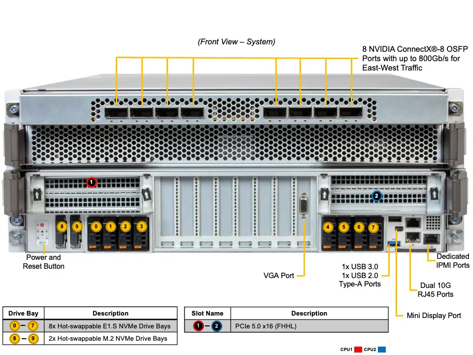 Mặc dù nhỏ gọn hơn các dòng 8U, máy vẫn sở hữu trọn vẹn sức mạnh của bảng mạch NVIDIA HGX™ H100: