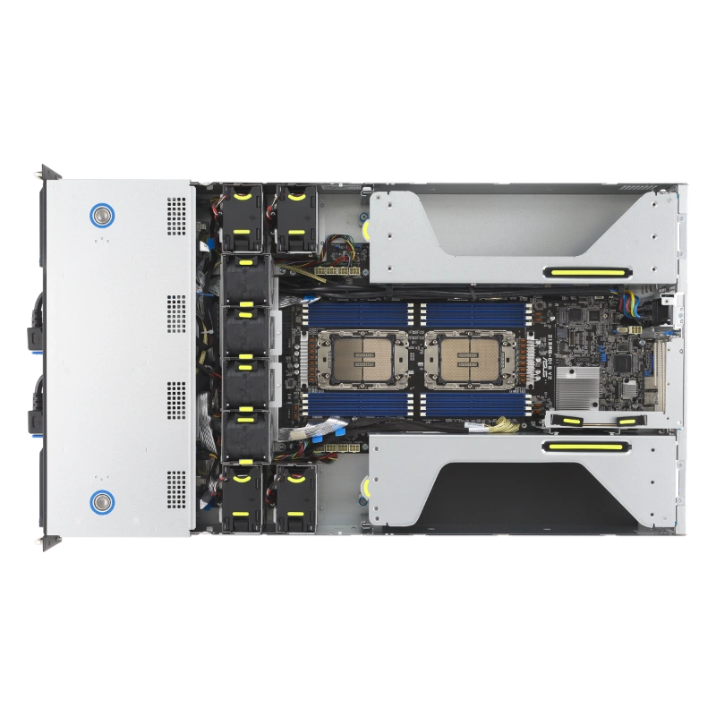 ASUS đã áp dụng thiết kế hệ thống tiết kiệm năng lượng, với các đường dẫn khí riêng biệt cho CPU và GPU, giúp tối ưu hóa nhiệt độ hoạt động. Điều này ngăn chặn tình trạng quá nhiệt, đảm bảo hệ thống chạy ổn định ngay cả trong môi trường làm việc liên tục 24/7. Sản phẩm hỗ trợ lên đến hai nguồn điện Titanium 2600W dự phòng, mang lại sự ổn định cao và giảm thiểu rủi ro gián đoạn do mất điện.