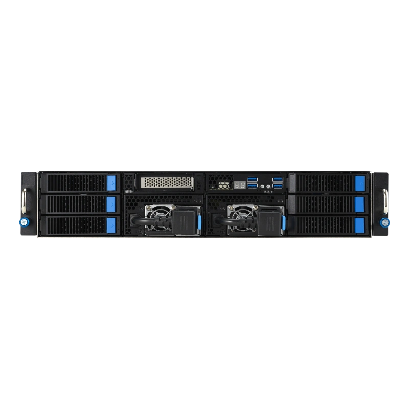 ESC4000-E11 thực sự ấn tượng với thiết kế scale-up. Máy chủ có tổng cộng sáu khay lưu trữ ở mặt trước, hỗ trợ kết hợp Tri-Mode NVMe/SATA/SAS, cho phép người dùng linh hoạt chọn loại ổ đĩa phù hợp với nhu cầu. NVMe mang lại tốc độ đọc/ghi cực nhanh, lý tưởng cho các ứng dụng yêu cầu truy xuất dữ liệu thời gian thực như AI training.