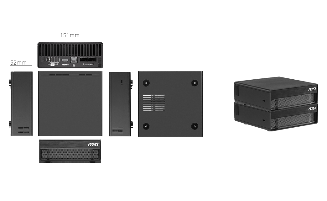 MSI đã thể hiện tư duy thiết kế đột phá khi gói gọn toàn bộ sức mạnh “khủng khiếp” trên vào một khối hộp có kích thước chỉ 151 x 151 x 52 mm và trọng lượng vỏn vẹn 1.2 kg.