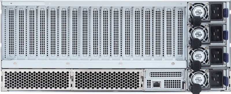 Lưu trữ tốc độ cao: Máy sở hữu 4 khay ổ cứng NVMe Gen5 x4 hot-swap. Chuẩn Gen5 đảm bảo luồng dữ liệu đầu vào (Input) cho hệ thống luôn thông suốt, không gây nghẽn cổ chai cho sức mạnh tính toán của GPU.